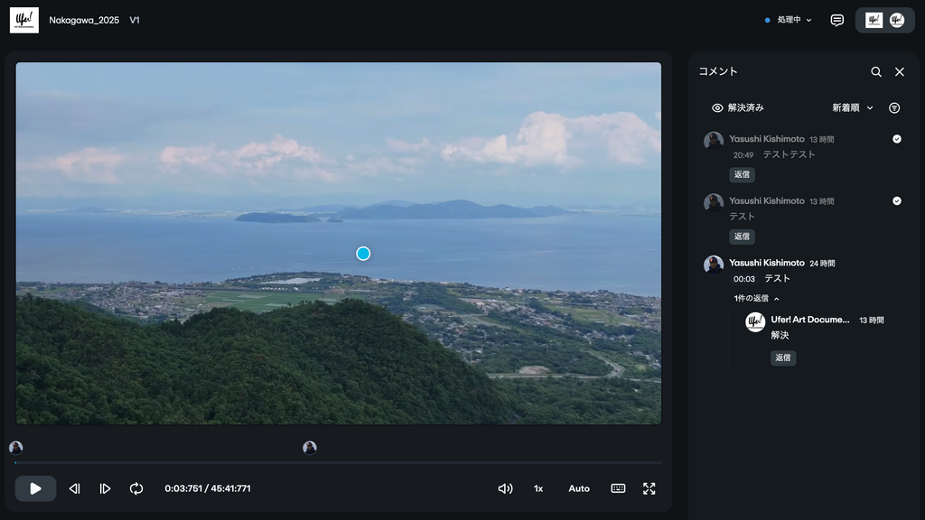 Vimeo レビューページを使う事で、仮編集に対する修正点などを共有して作業が進められます。